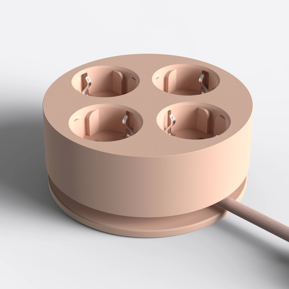 C2 är en cirkulär strömlösning med mjukt rundad, skandinavisk design och integrerad kabelhantering. Genom att enkelt linda sladden runt basen kan du justera kabellängden och skapa ett rent, balanserat uttryck, oavsett placering.