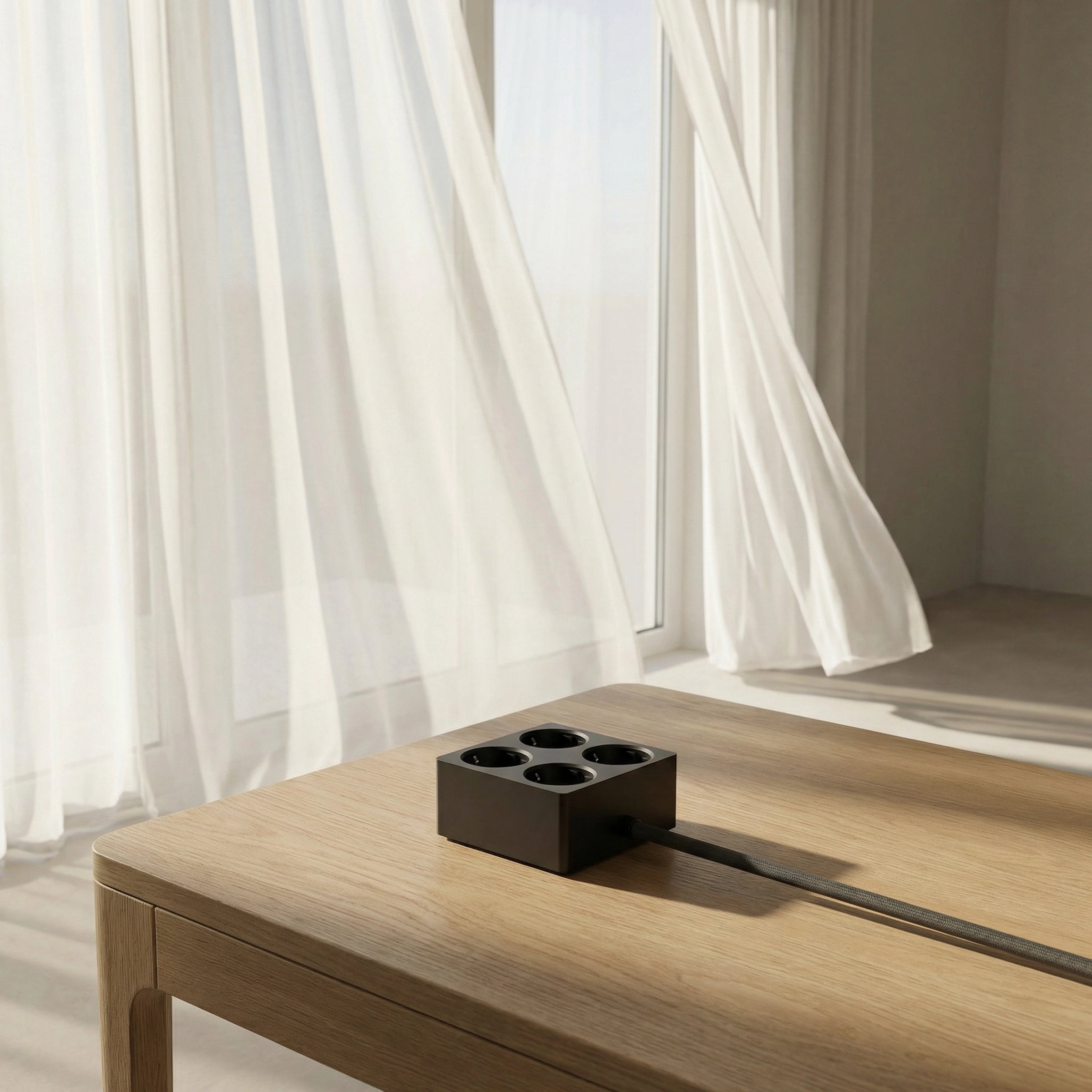 S1 omdefinierar moderna strömlösningar genom sin magnetiska infästning och distinkta fyrkantiga form. Den magnetiska infästningen gör att den även kan placeras under bord, på skrivbordsben och andra platser, bara fantasin sätter begräsningar.